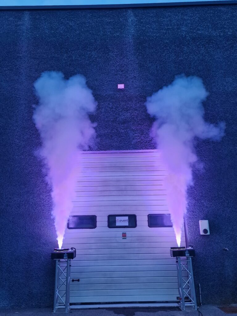 Contrairement au CO2, les geysers sont des machines à fumée qui propulsent des jets verticaux de fumée dense à l’aide d’un liquide à fumée à dispersion rapide. Le résultat visuel est similaire à première vue : une colonne de fumée s’élève rapidement vers le haut. Toutefois, il est moins puissant, moins explosif, et génère un impact visuel plus doux et décoratif.